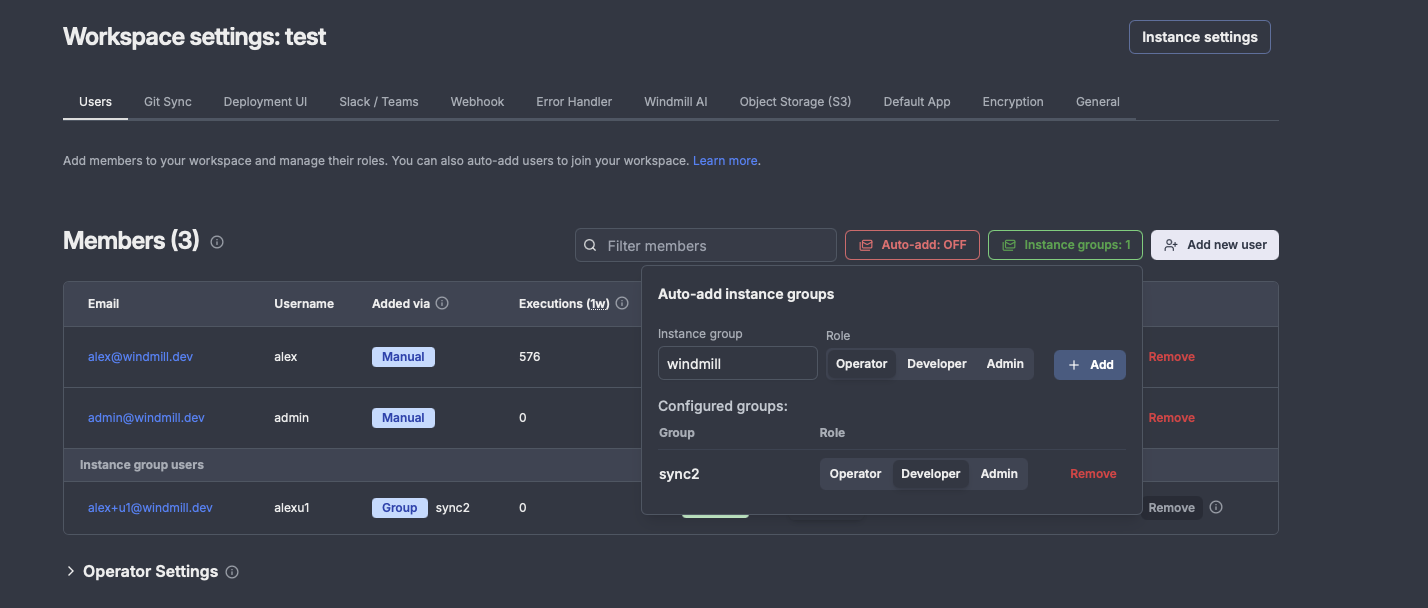 Manage Windmill instance configuration declaratively with YAML files, a Kubernetes operator, or the CLI. Version-control, review, and reproduce your setup across environments.